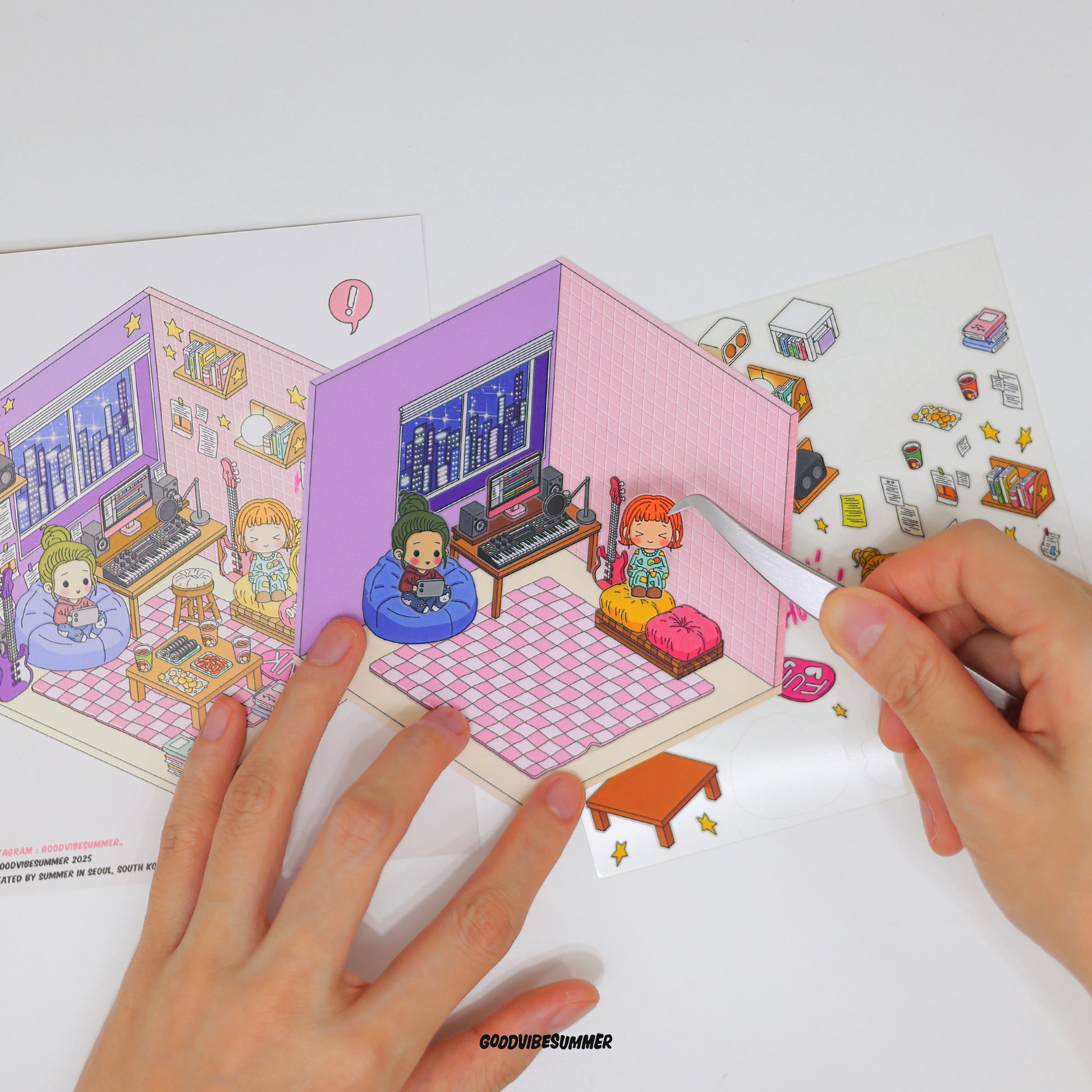 With GOODVIBESUMMER Scene Sticker Kits you simply peel, place, and build: no paint spills, no glitter trails—just pure, screen-free creativity that flexes spatial smarts and sparks imagination for every age.